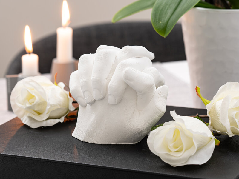 Fotoforstørrelser, indgraverede glasskulpturer og matchende tatoveringer begynder at føles lidt passé. Udødeliggør i stedet jeres kærlighed på en kreativ og romantisk måde med et håndafstøbningskit, der gengiver jeres ømt forenede hænder i gips. (Læs mere)